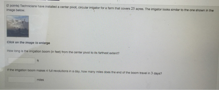 Solved 3 If The Irrigation Boom Makes 5 Full Revolutions
