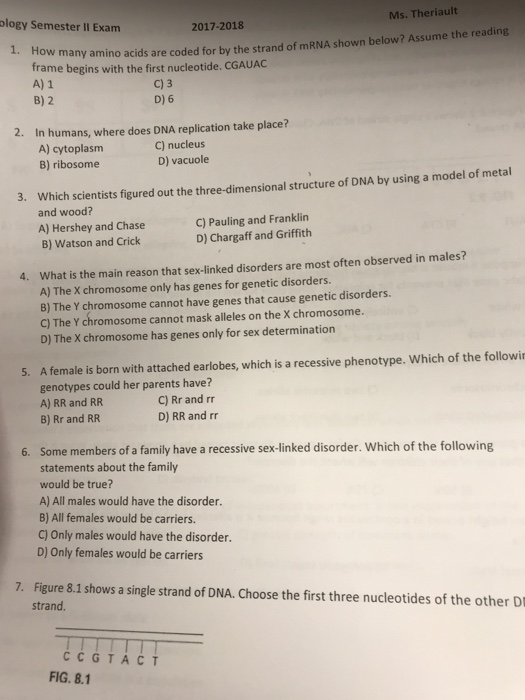 Solved Ology Semester Ii Exanm Ms Theriault 2017 2018 Ow
