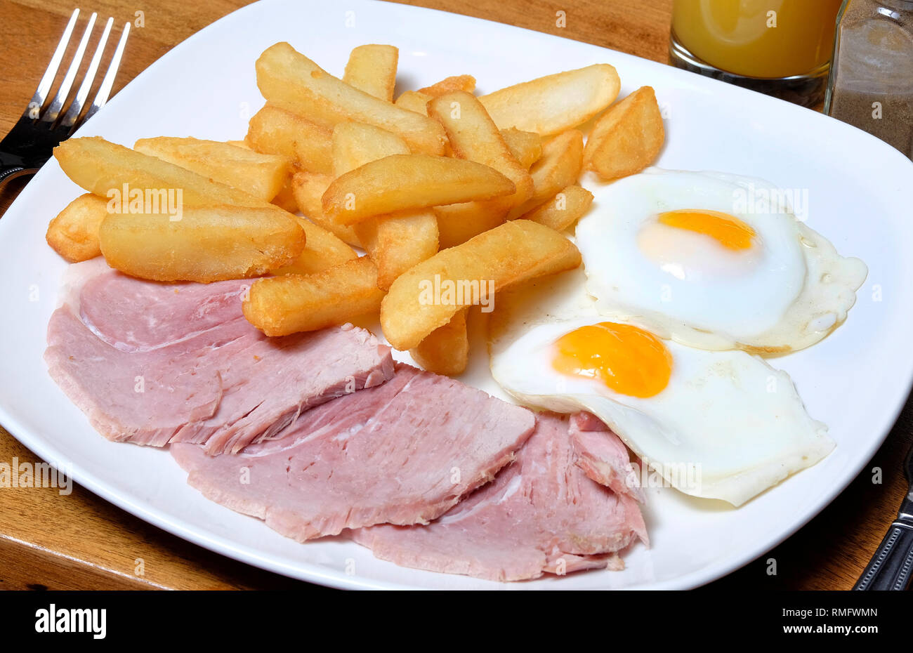 Take the tray out of the oven and turn the gammon over then crack the egg into the corner of the tray. Calories in gammon with leeks in cream sauce. Cook the chips according to the pack instructions grill the gammon steaks for 3 4 mins on each side while they re sizzling heat some vegetable oil in a pan crack in the eggs and cook for 2 3 mins put the peas in a small pan cover with boiling water and leave for 2 mins then drain plate up the chips gammon steak fried egg and peas. There are 600 calories in 1 serving of yates seniors gammon egg and chips.
