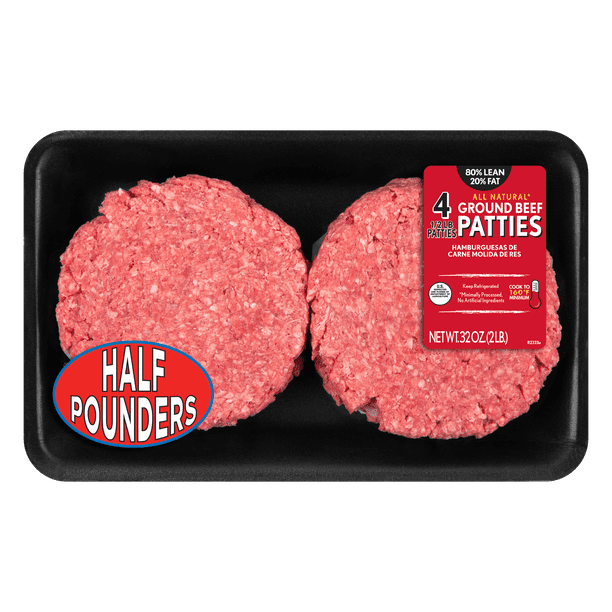 All Natural 80 Lean 20 Fat Ground Beef Patties 4 Count 2 Lb