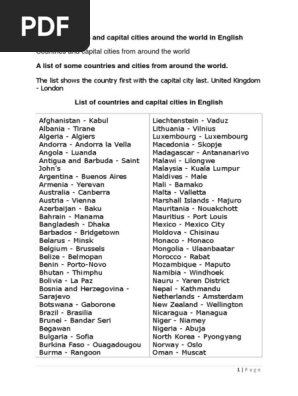 List Of Countries And Their Capitals Cities Download Free Pdf Here