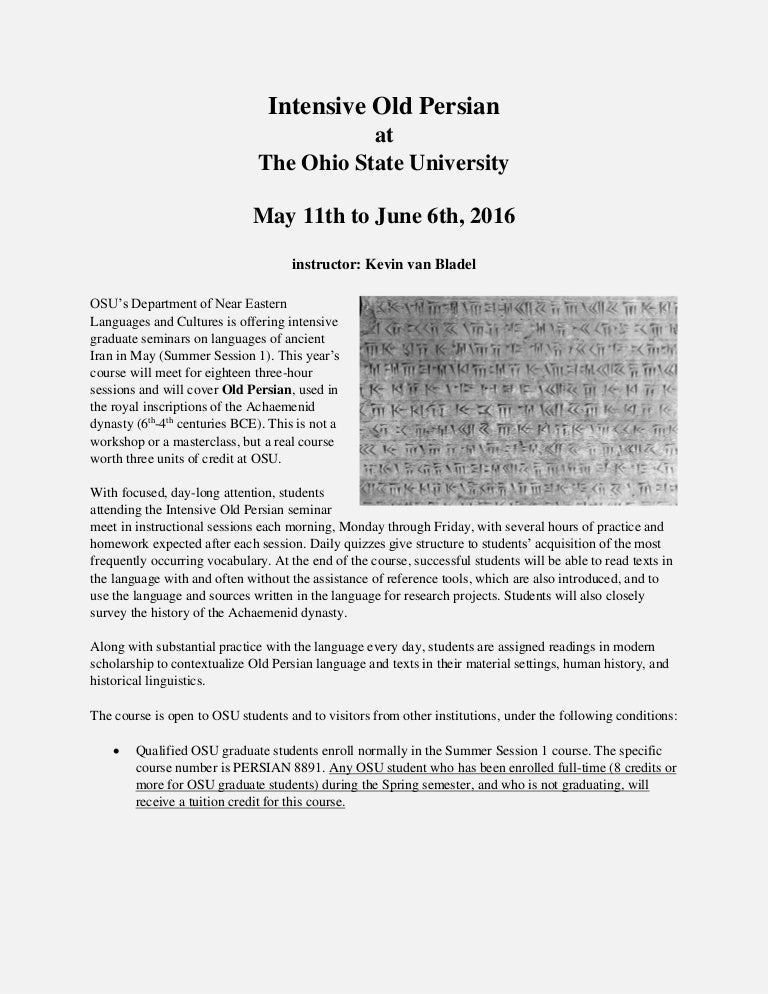 Call For Applications Intensive Old Persian The Ohio State Universi