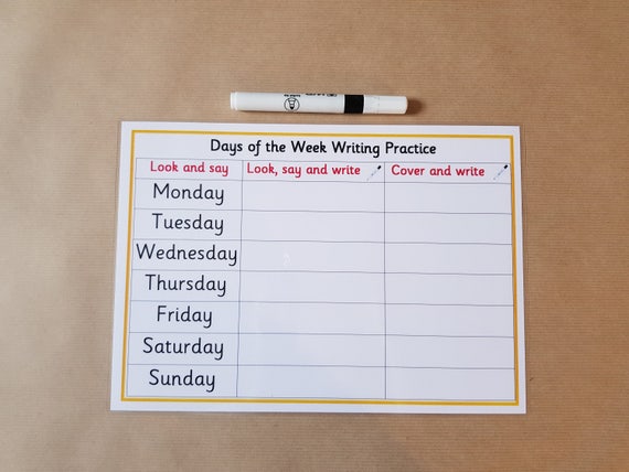 Days Of The Week Writing Mat Cover And Write Mat Ks1 Year Etsy