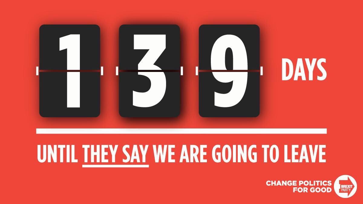 The Brexit Party On Twitter 138 Days Until The 31st October When They Claim We Will Finally Leave The Eu Rt If You Think We Should Have Left Months Ago Https T Co Sxe6lkfche