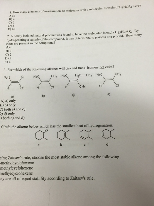Solved How Many Elements Of Unsaturation Do Molecules Wit