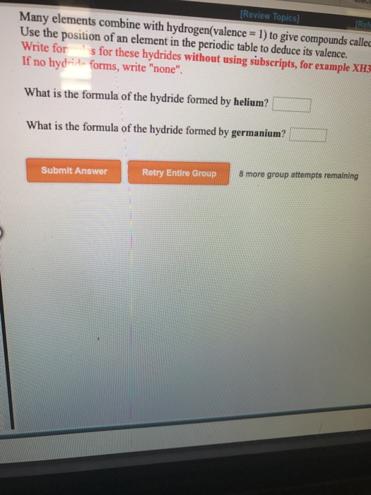 Solved Many Elements Combine With Hydrogen Valence 1 T Chegg Com