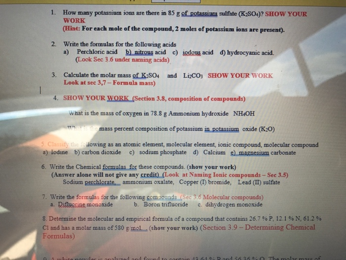 Solved 1 How Many Potassium Ions Are There In 85 G Of Po