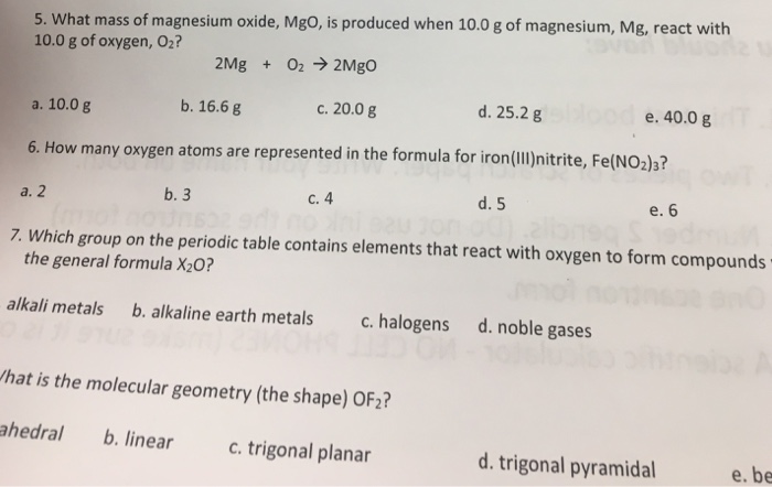 Solved What Mass Of Magnesium Oxide Mgo Is Produced Whe