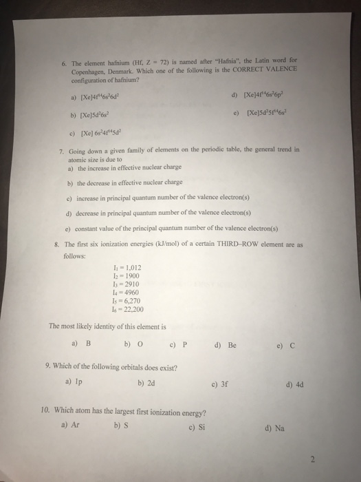 Solved 6 The Element Hafnium Hf Z 72 Is Named After H Chegg Com