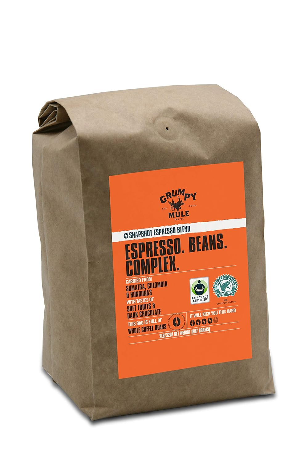 Amazon Com Grumpy Mule Snapshot Espresso Whole Bean Coffee 2 Pounds 32 Oz 907 Grams Fair Trade And Rainforest Alliance Certified From Sumatra Colombia And Honduras Grocery Gourmet Food