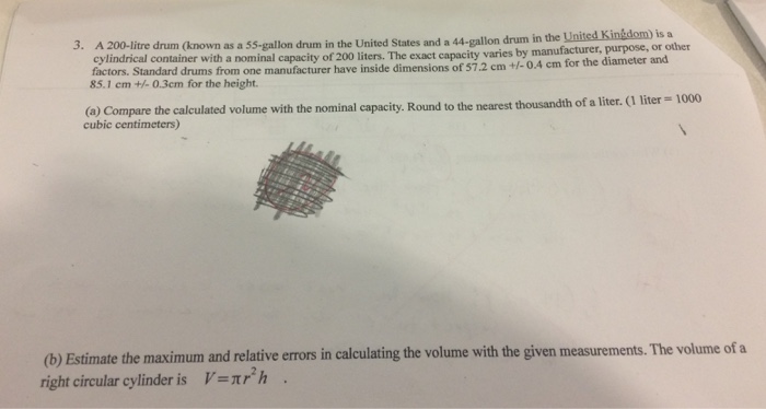 Solved A 200 Litre Drum Known As A 55 Gallon Drum In The