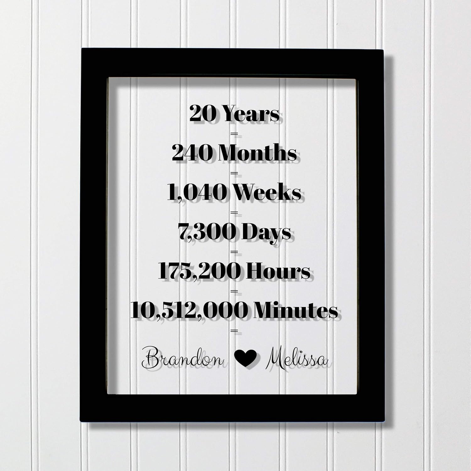 Amazon Com 20 Year Anniversary Frame Custom Names Floating Frame Anniversary Gift Twenty Years Anniversary Months Weeks Days Hours Minutes Handmade