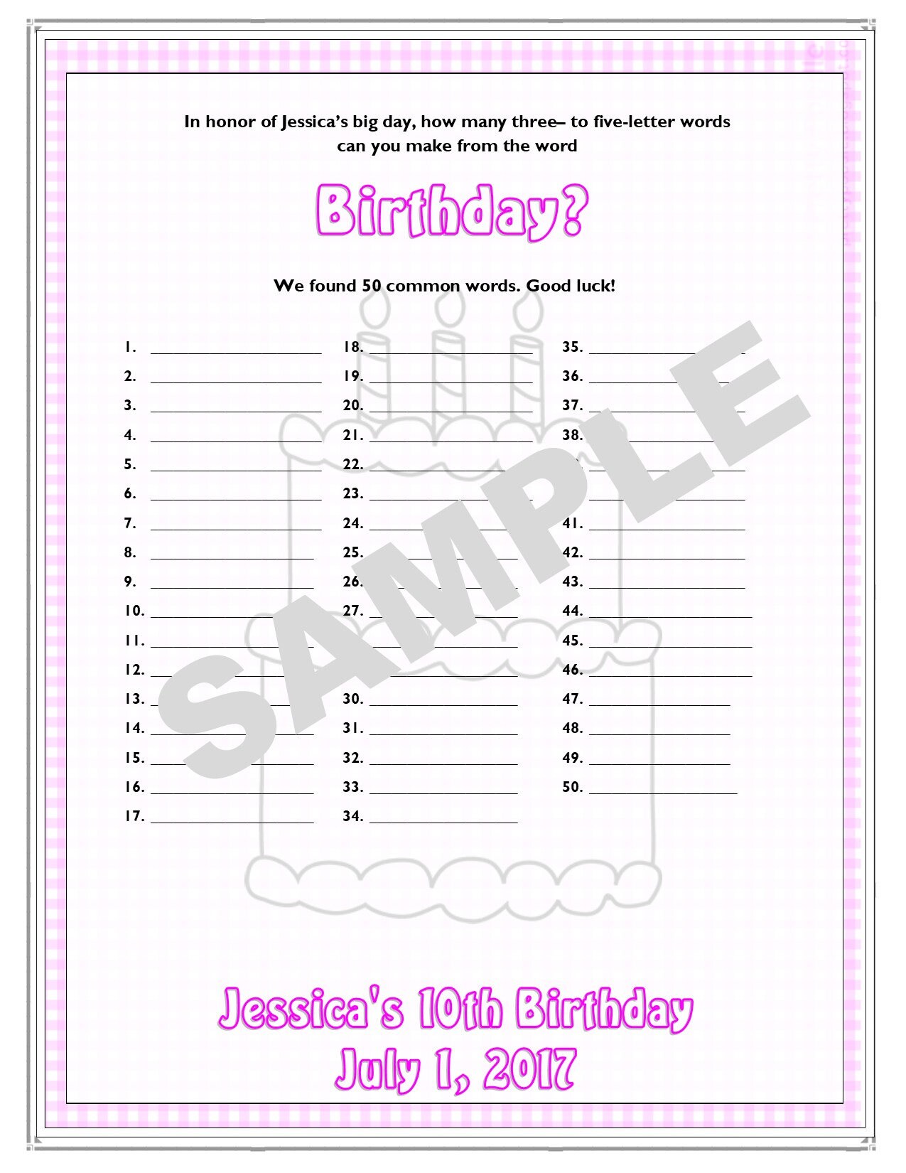 Free Printable Cookies And Milk Birthday Party Game How Many Words