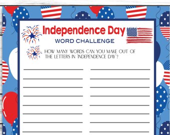 July 4th Party Word Challenge Game Printable Kids Activity Sheet