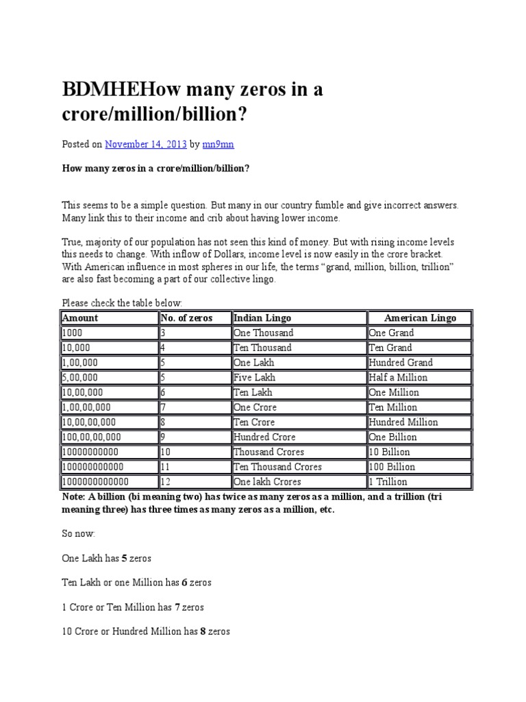 In Mathematics How Many Zeros Does A Million And A Billion Have In Both American Maths And British Maths When I See Million And Billion In News Articles Which One Should I