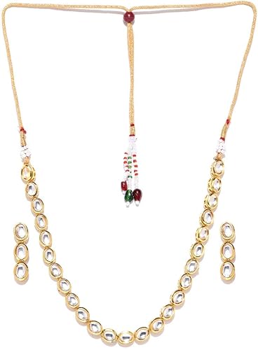 Amazon Com Jewels Galaxy Elegant Kundan Studded Delicate Gold Plated Traditional Light Weight Necklace Set For Women Girls Gold Jewelry